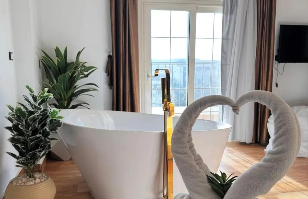 The Palm Pyramids Kafrat al Jabal has 7 rooms, comprising a sitting area. A flat-screen TV with satellite channels, along with a mini fridge bar, tea and coffee making equipment, are offered. An ironing set and climate control are featured for guests' comfort. You can enjoy views of the city.